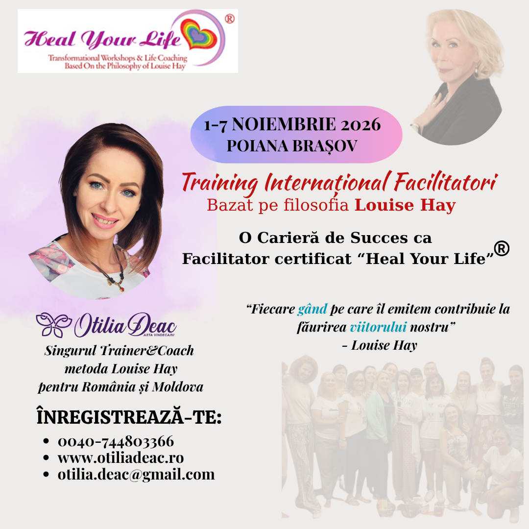 Transform your life, yours and others, by becoming a Certified Workshop Leader Heal Your Life® method by Louise Hay, with the guidance of Otilia F. Deac, the only Teachers Trainer and Coach for Romania and Moldova.